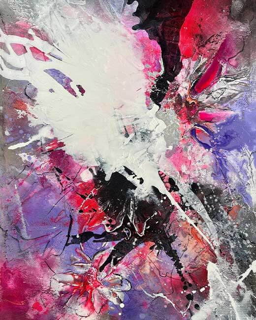 Meine Kunst entsteht aus dem Moment heraus. Farben, Strukturen und Bewegungen entwickeln sich während des Malens und formen Schritt für Schritt das Bild.