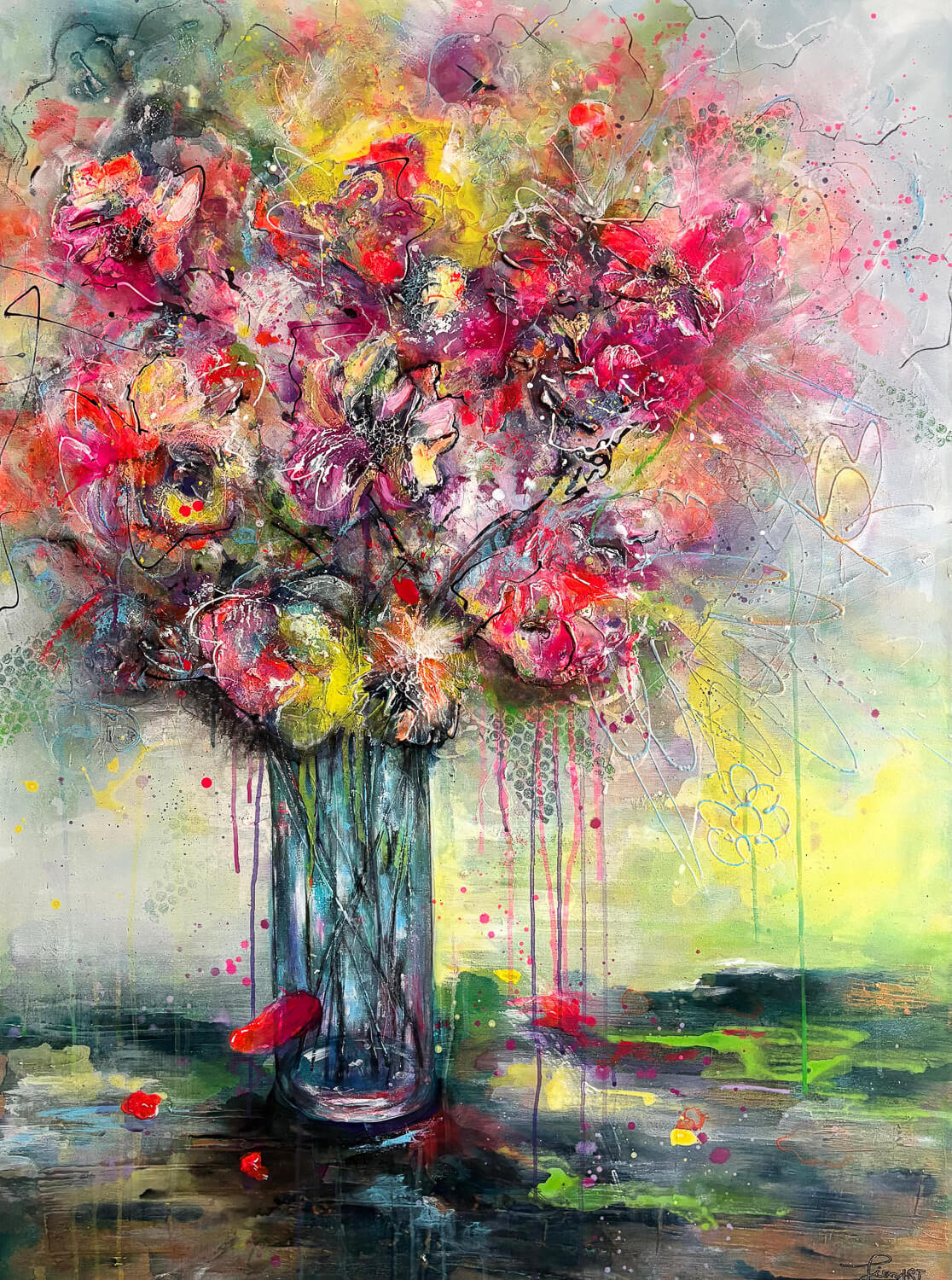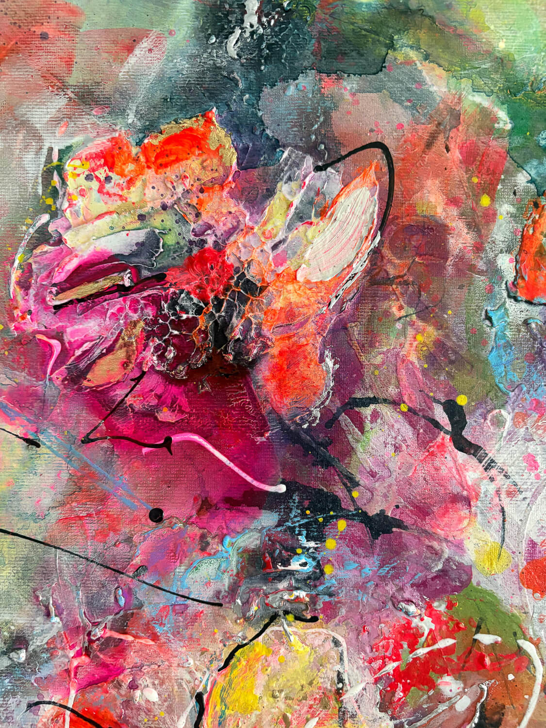 Meine Kunst entsteht aus dem Moment heraus. Farben, Strukturen und Bewegungen entwickeln sich während des Malens und formen Schritt für Schritt das Bild.