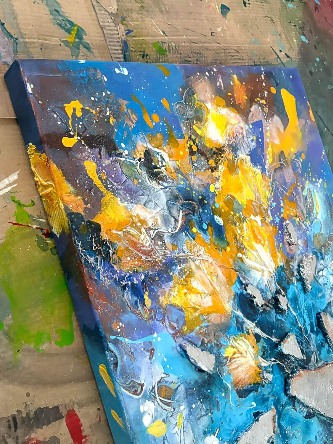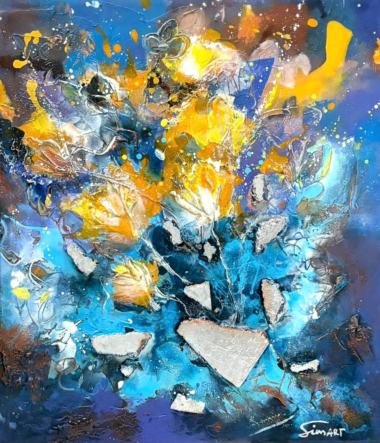 Meine Kunst entsteht aus dem Moment heraus. Farben, Strukturen und Bewegungen entwickeln sich während des Malens und formen Schritt für Schritt das Bild.