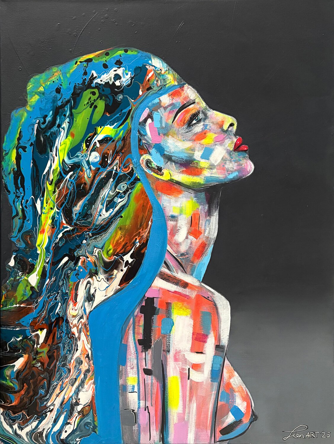 Meine Kunst entsteht aus dem Moment heraus. Farben, Strukturen und Bewegungen entwickeln sich während des Malens und formen Schritt für Schritt das Bild.