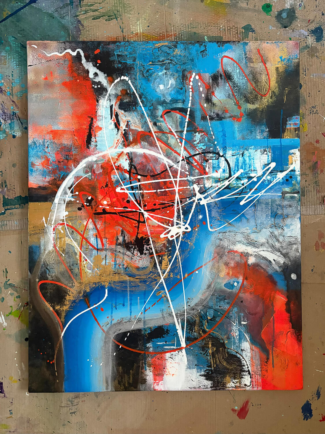 Meine Kunst entsteht aus dem Moment heraus. Farben, Strukturen und Bewegungen entwickeln sich während des Malens und formen Schritt für Schritt das Bild.