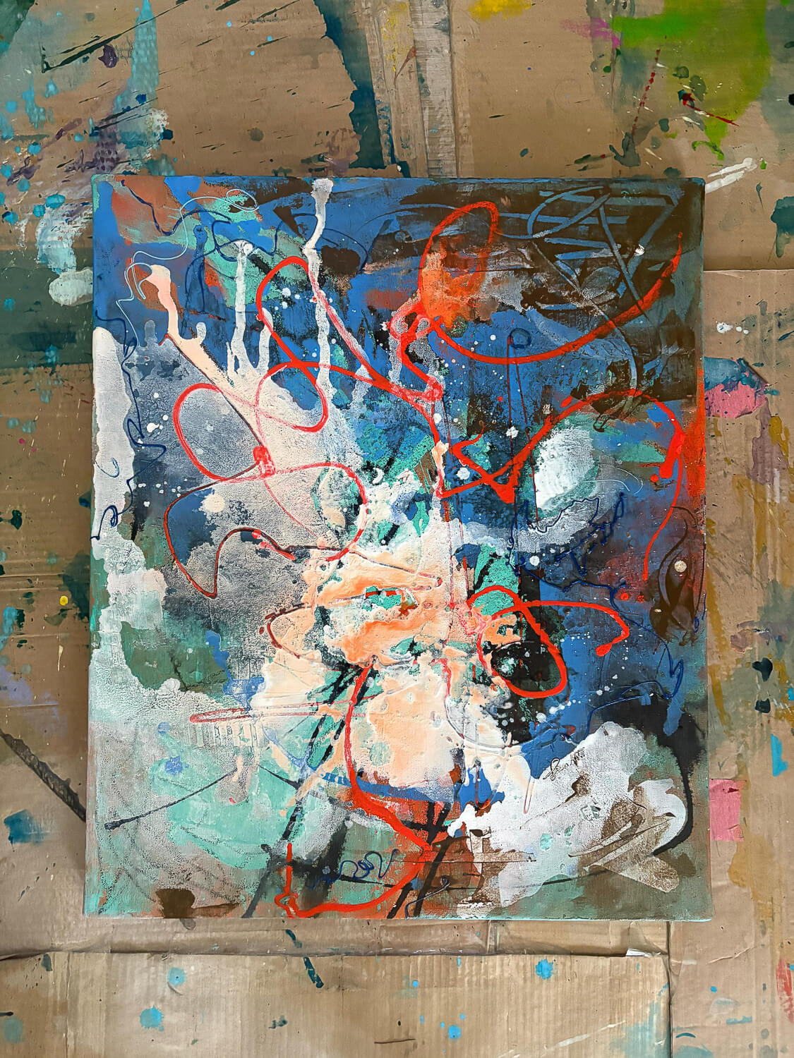 Meine Kunst entsteht aus dem Moment heraus. Farben, Strukturen und Bewegungen entwickeln sich während des Malens und formen Schritt für Schritt das Bild.