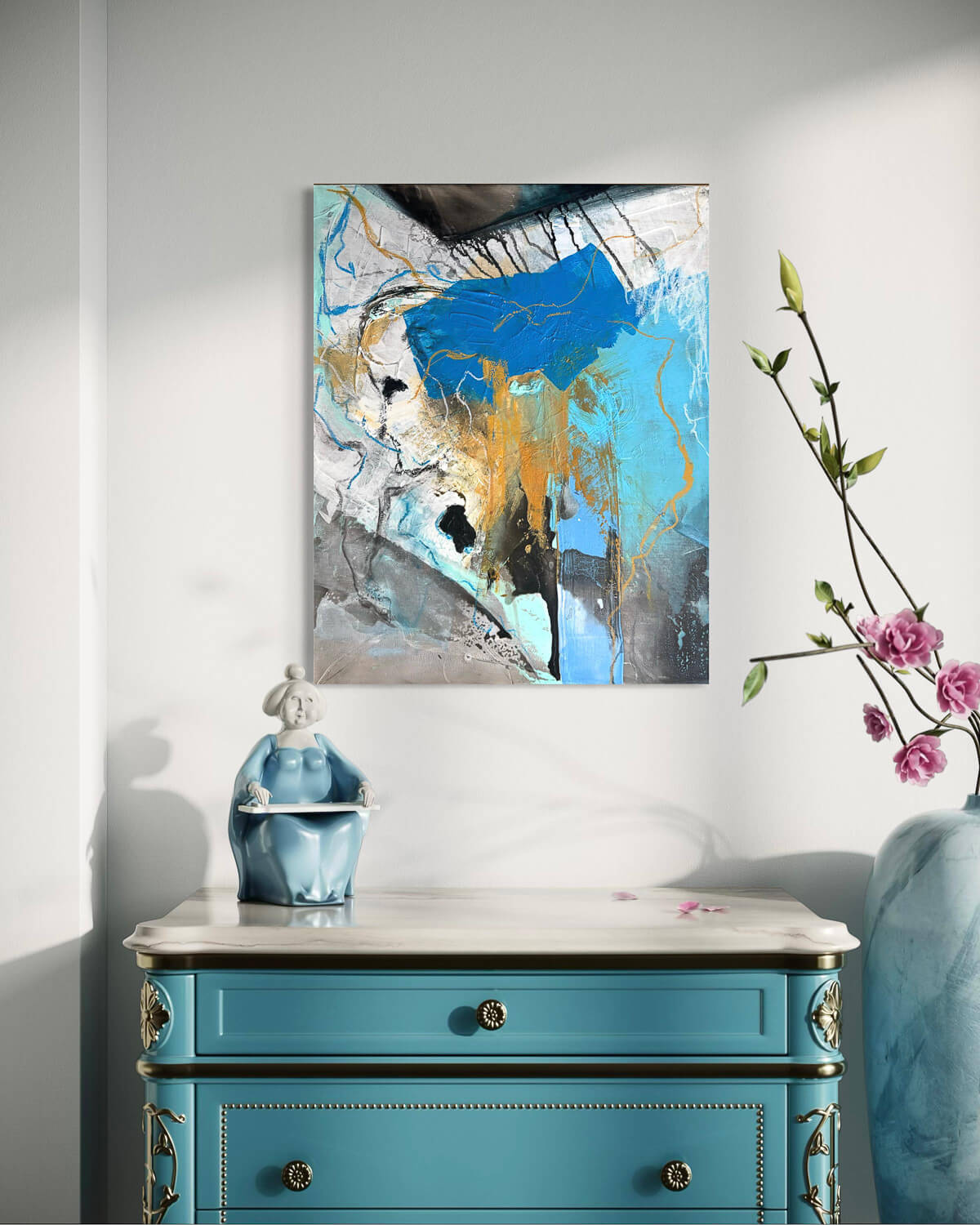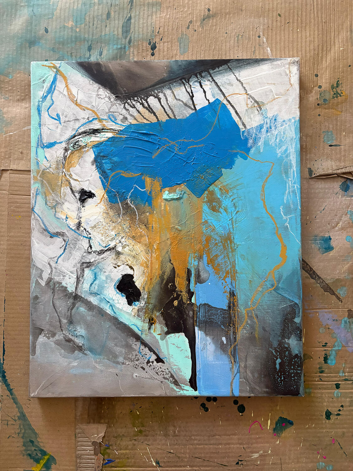 Meine Kunst entsteht aus dem Moment heraus. Farben, Strukturen und Bewegungen entwickeln sich während des Malens und formen Schritt für Schritt das Bild.