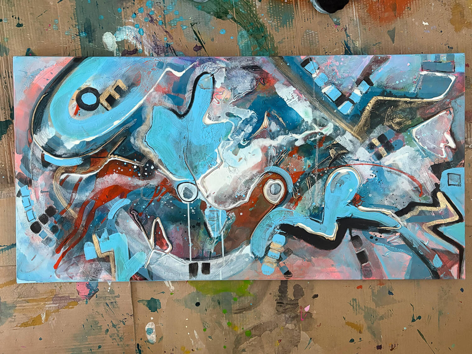 Meine Kunst entsteht aus dem Moment heraus. Farben, Strukturen und Bewegungen entwickeln sich während des Malens und formen Schritt für Schritt das Bild.